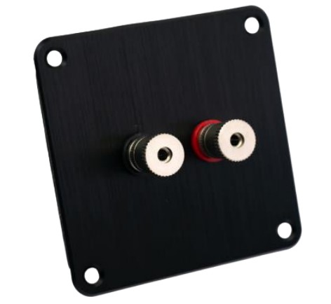 Set includes: • 1 pc. of black anodized single binding post plate (PE 091-602) • 1 set of M9 satin nickel binding posts (012-0220) • 4 mounting screws for binding post plate (PH) • 1 gasket for the plate Technical Data: • Plate Size: 100 mm x 100 mm • Thickness: 3 mm • Weight: 175 grams
