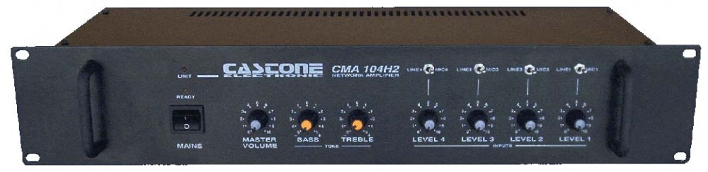 4 csatornás keverő előerősítő, 4 mikrofon bemenettel és 4 vonalszintű (CD, magnó) bemenettel, melyek közül kapcsoló segítségével választható a kívánt bemenet jele. A készülék közös mély-magas hangszínnel és csatornánkénti hangerő szabályozó, master szabályzó potenciométerrel is ellátott, valamint beépített limitert tartalmaz. Vonalszintű és 100V-os 100W terhelhetőségű kimenettel is rendelkezik. Előlap: