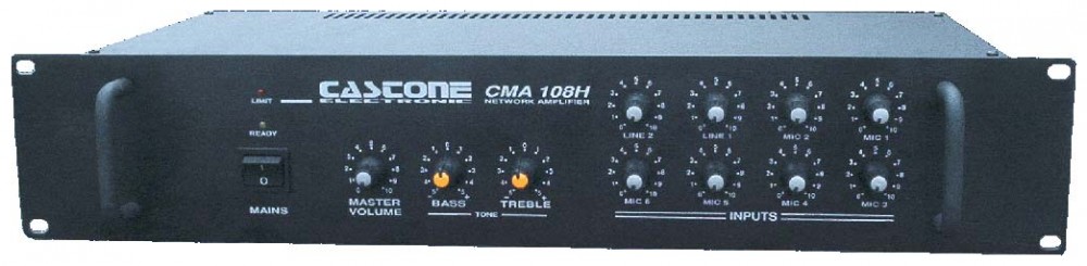 8 csatornás keverő előerősítő, 6 mikrofon bemenettel és 2 vonalszintű (CD, magnó) bemenettel. A készülék közös mély-magas hangszínnel és csatornánkénti hangerő szabályozó, master szabályozó potenciométerrel is ellátott, valamint beépített limitert tartalmaz. Vonalszintű és 100V-os 100W terhelhetőségű kimenettel is rendelkezik. Előlap: