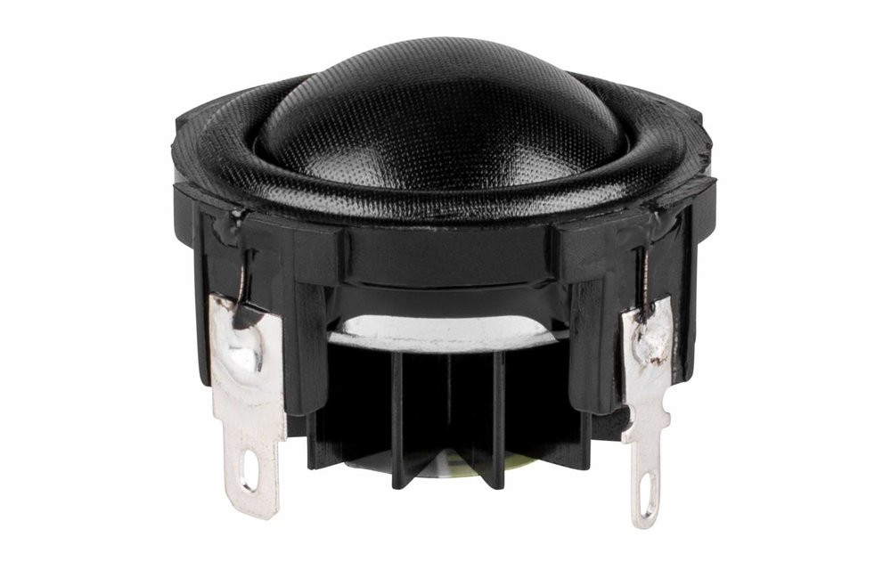 Dayton Audio's ND25FN-4 compact soft dome tweeter element features high output and smooth, low-distortion sound. The high-strength neodymium motor features an aluminum heat sink for cool operation and reduced power compression.