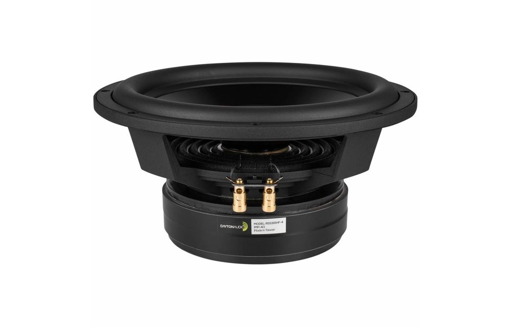 As with the rest of the Dayton Audio Reference Series speakers, the main focus of these subwoofers is ultra-low-distortion. Second, third, and intermodulation distortion are kept extremely low by utilizing three short-circuit paths within the motor structure. A durable aramid fiber spider and extensive venting throughout provide quiet and uniform excursion for the Reference Series RSS315HF-4 12" subwoofer speaker. The black anodized cone, rubber surround, and custom basket give this driver and the rest of the Reference Series a unique, high-end look. Choose the high fidelity version for home systems when you are looking for clean, low bass and are not restricted by cabinet size.