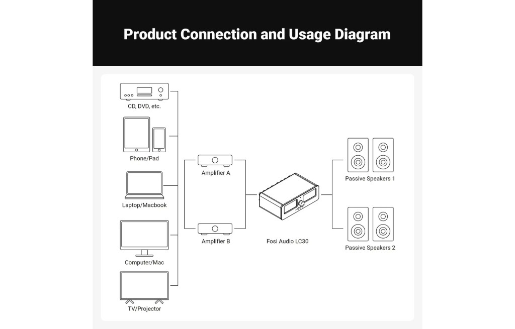 Product details Fosi Audio LC30 Amplifier Speaker Switcher
