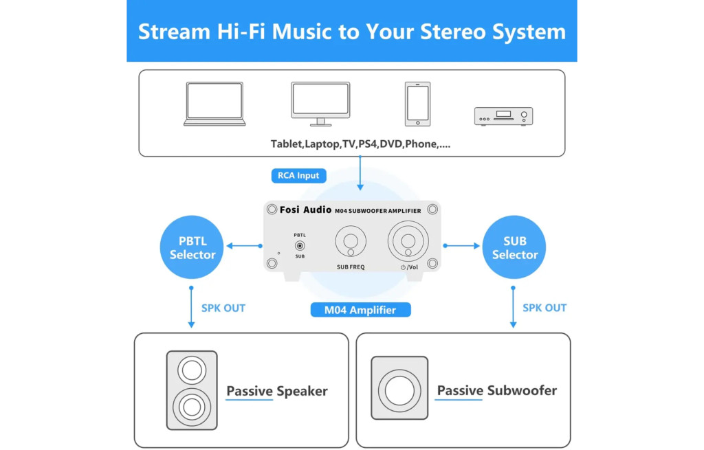 Inject new energy into your audio experience with the Fosi Audio M04 Mono Amplifier. This versatile amplifier caters to both traditional speaker setups and those seeking more depth.