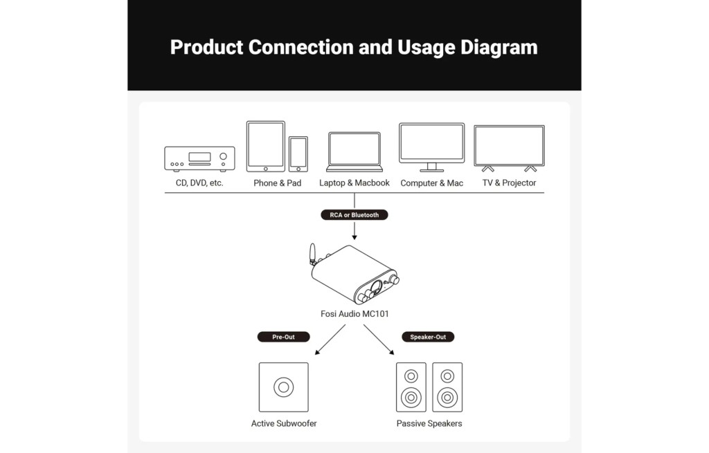 Infuse your music with clarity and power using the Fosi Audio MC101 Stereo Amplifier. This compact amplifier breathes new life into your passive speakers, ideal for desktops or smaller entertainment setups.
