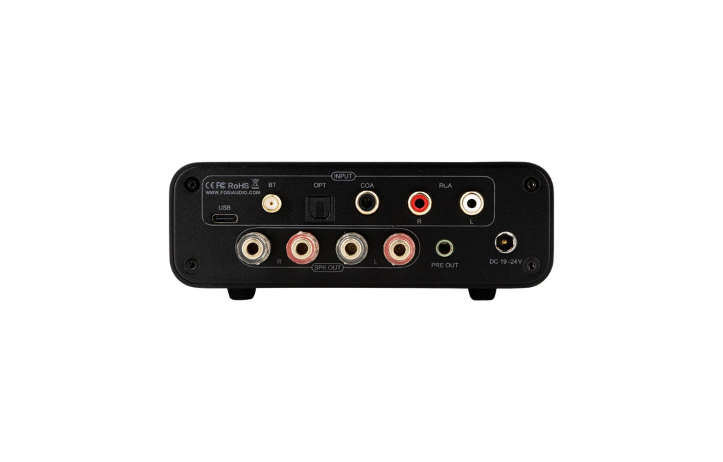 - Flexible Connectivity: Supports Bluetooth, USB, Optical, Coaxial, and RCA inputs, along with speaker, pre-out, and headphone outputs.