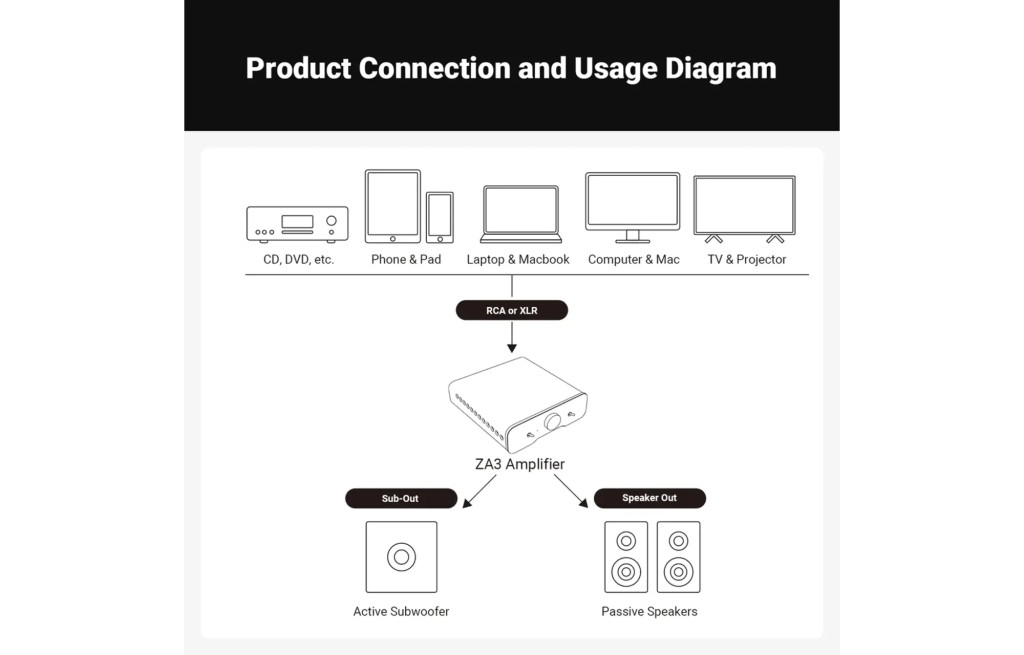 Breathe new life into your audio setup with the versatile Fosi Audio ZA3 2CH Mono Amplifier. This feature-packed amplifier caters to both traditional stereo listening and more advanced setups for audiophiles. The ZA3's defining characteristic is its dual-mode functionality. In stereo mode, it delivers robust power to drive two passive speakers for a clear and detailed listening experience. However, the magic lies in its ability to switch to mono mode. This unlocks two potential benefits: dedicating all its amplification power to a single speaker for a louder and more dynamic sound, or utilizing two ZA3 units in mono mode for improved stereo separation in a wider soundstage.