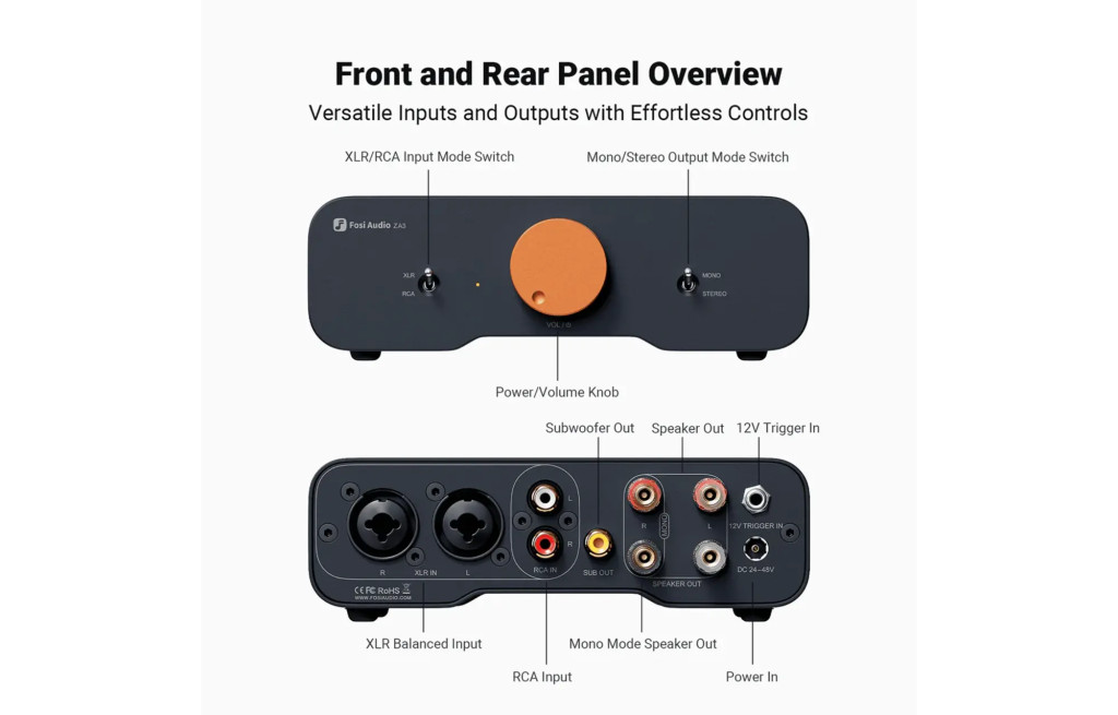 Beyond its versatile operation modes, the Fosi Audio ZA3 boasts high-performance digital amplification thanks to a well-regarded Texas Instruments TPA3255 chip. This translates to clean and clear audio reproduction, ensuring you can fully appreciate the nuances of your music or movies. Balanced XLR and RCA inputs provide flexible connectivity options for integrating the ZA3 into various audio setups, while the compact and stylish design ensures it complements any space. Whether you're seeking to enhance a traditional stereo setup or explore the possibilities of wider soundstages, the Fosi Audio ZA3 2CH Mono Amplifier is a compelling choice for discerning listeners.