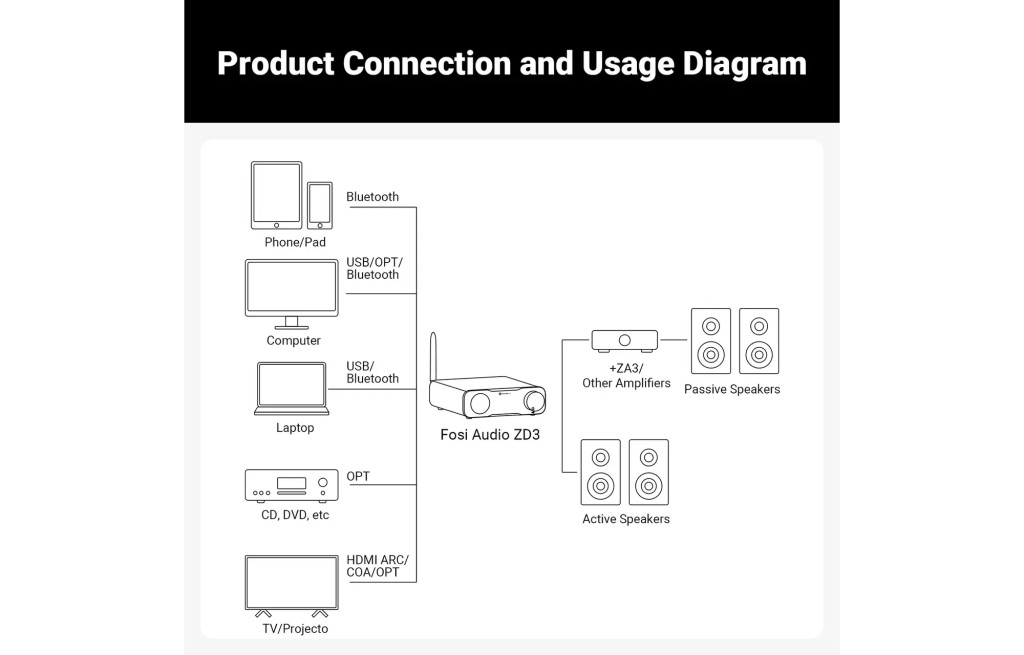 The Fosi Audio ZD3 is a fully balanced desktop DAC that combines high-fidelity audio performance with versatile connectivity options. Designed around the ESS ES9039Q2M chip, it supports high-resolution audio playback, handling PCM up to 32bit/768kHz and DSD512. This DAC also offers Bluetooth 5.0 for wireless streaming, making it a great choice for audiophiles looking for high-quality sound in a compact form.