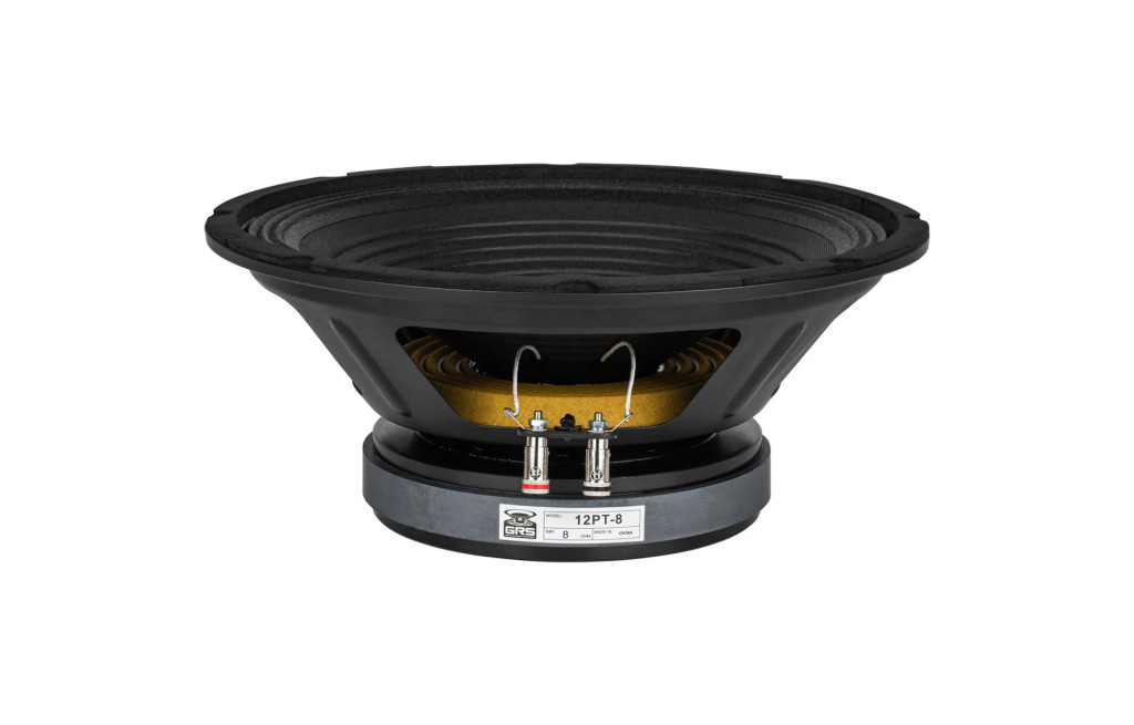 The GRS 12PT-8 12” professional paper cone woofer will deliver high output low frequency response without breaking the bank. Packed with features like a 3” voice coil, inductance reducing copper cap, under spider venting, and gap vents; this driver is built for high performance, low distortion, and incredible reliability. Whether you need a drop-in replacement for a damaged DJ speaker or you are designing a high output 2 or 3-way system, the 12PT-8 is the perfect driver for budget builds.