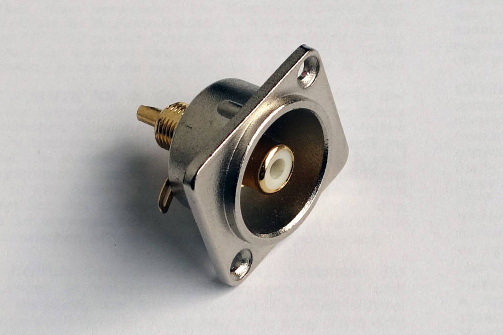 RCA aljzat – beépíthető ‘D’ házas RCA aljzat, aranyozott, ezüst